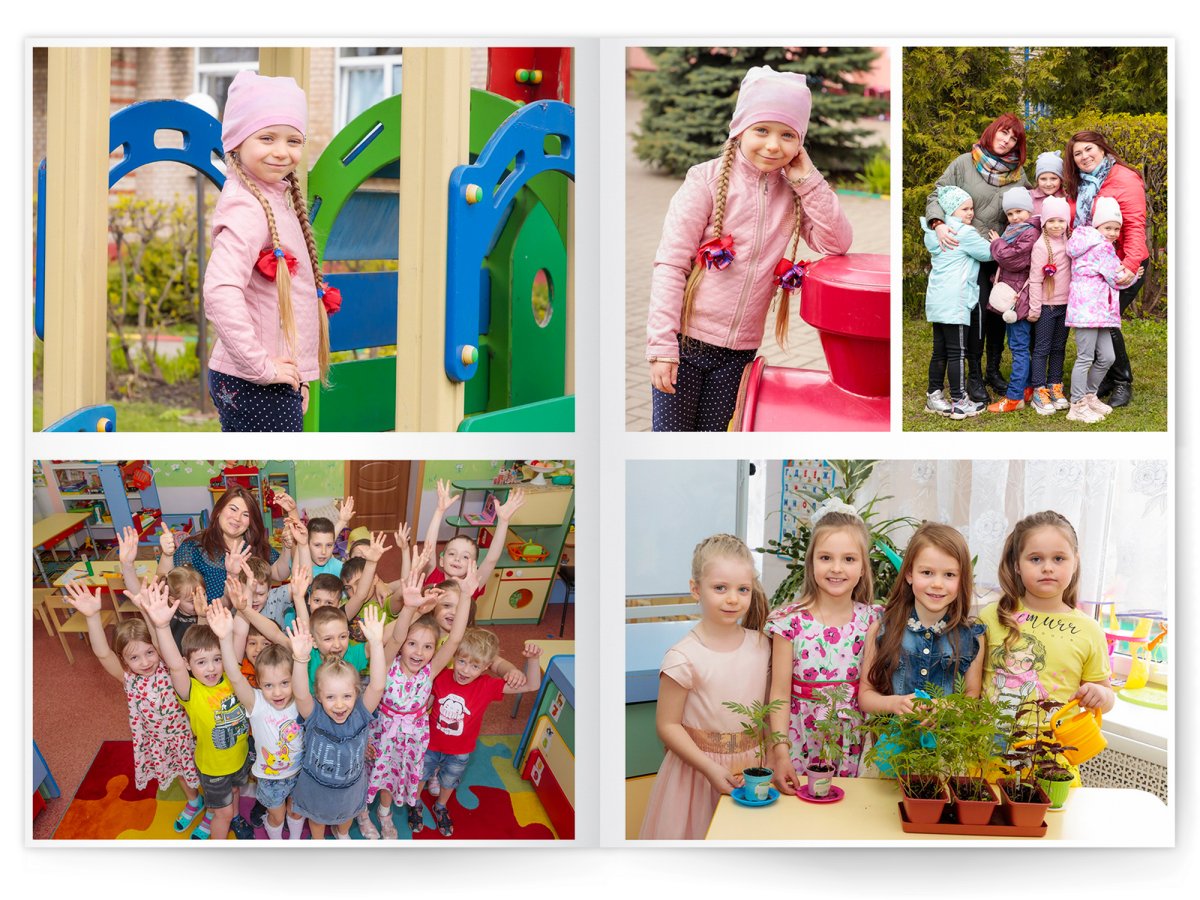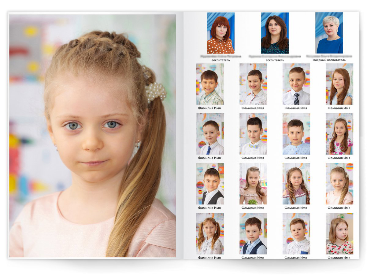 • Портреты всех детей и воспитателей на развороте