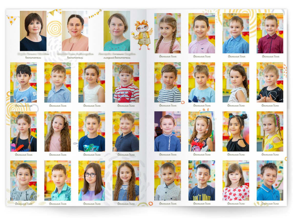 • Портреты всех детей и воспитателей на развороте