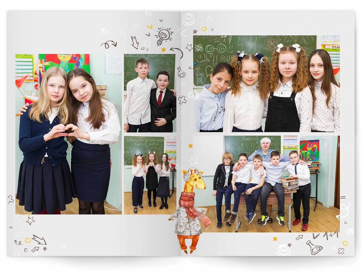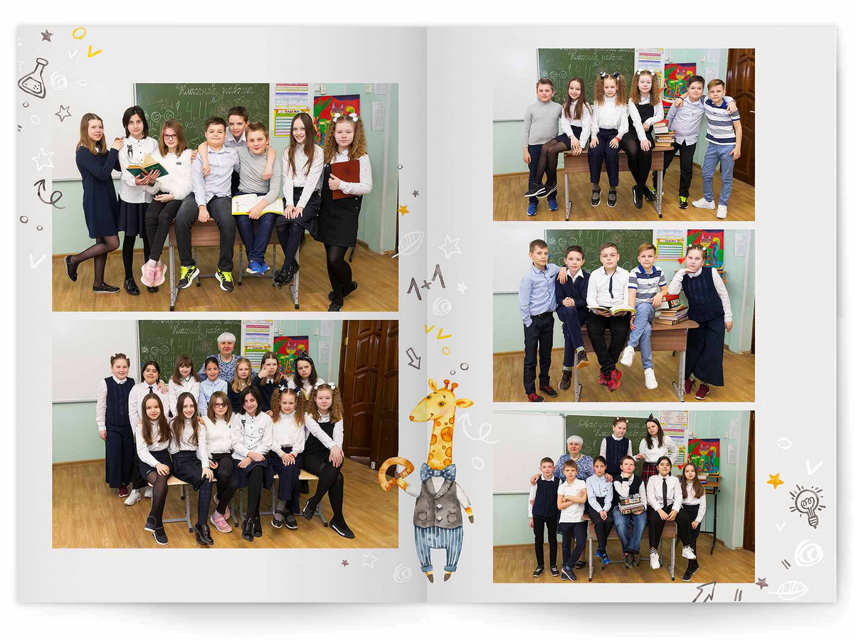 • Съёмка альбома в фотостудии от +750 ₽/человек (точная стоимость зависит от количества учеников и выбранной фотостудии)